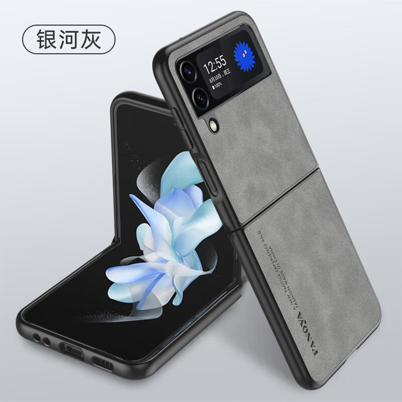 纽致适用三星ZFlip3手机壳Galxy zflip4折叠保护套全包防摔防滑磨砂外壳翻盖简约男女款羊巴皮高端男女 【银河灰】 三星Galaxy Z Flip3
