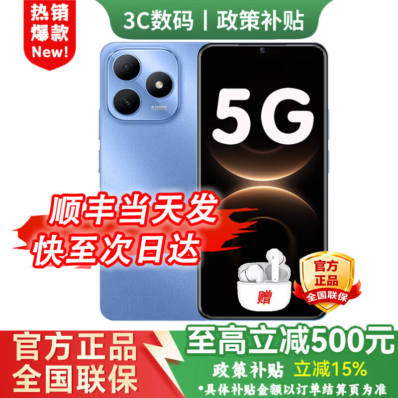 华为(HUAWEI)华为2026热销 新品5G上市 80S智选手机 地震预警 大电池大内存 5G鸿蒙手机 耐摔防水 全新未激活 晴空蓝 16G(8+8)+256GB 24期免息丨送3年保修+180天只换不修+碎屏险