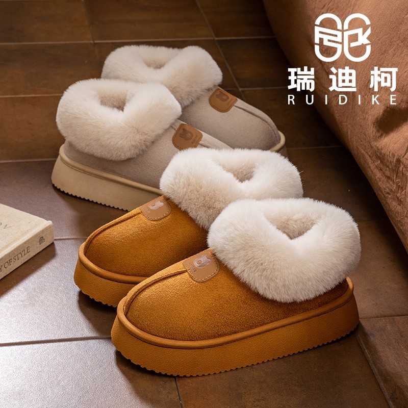红豆棉拖鞋女款冬季包跟保暖2025新款家居室内月子毛毛绒棉鞋女士