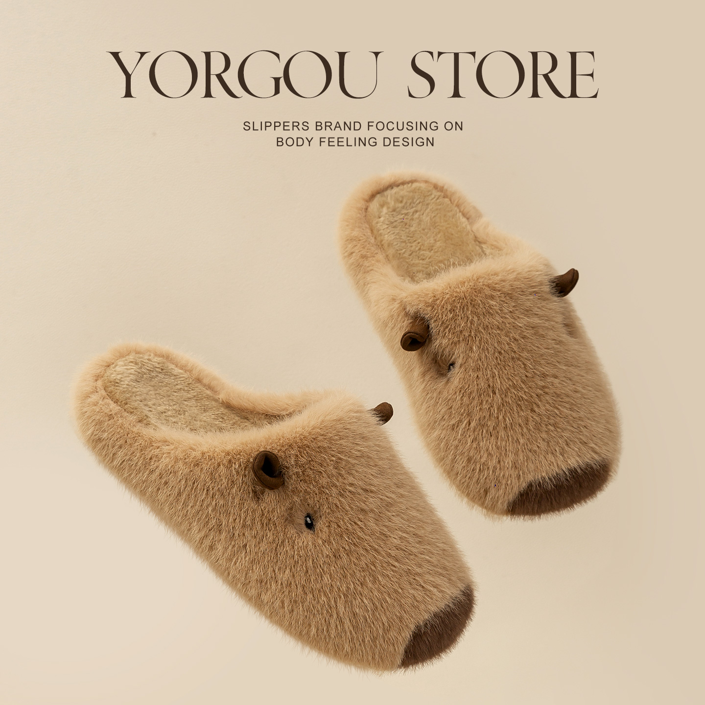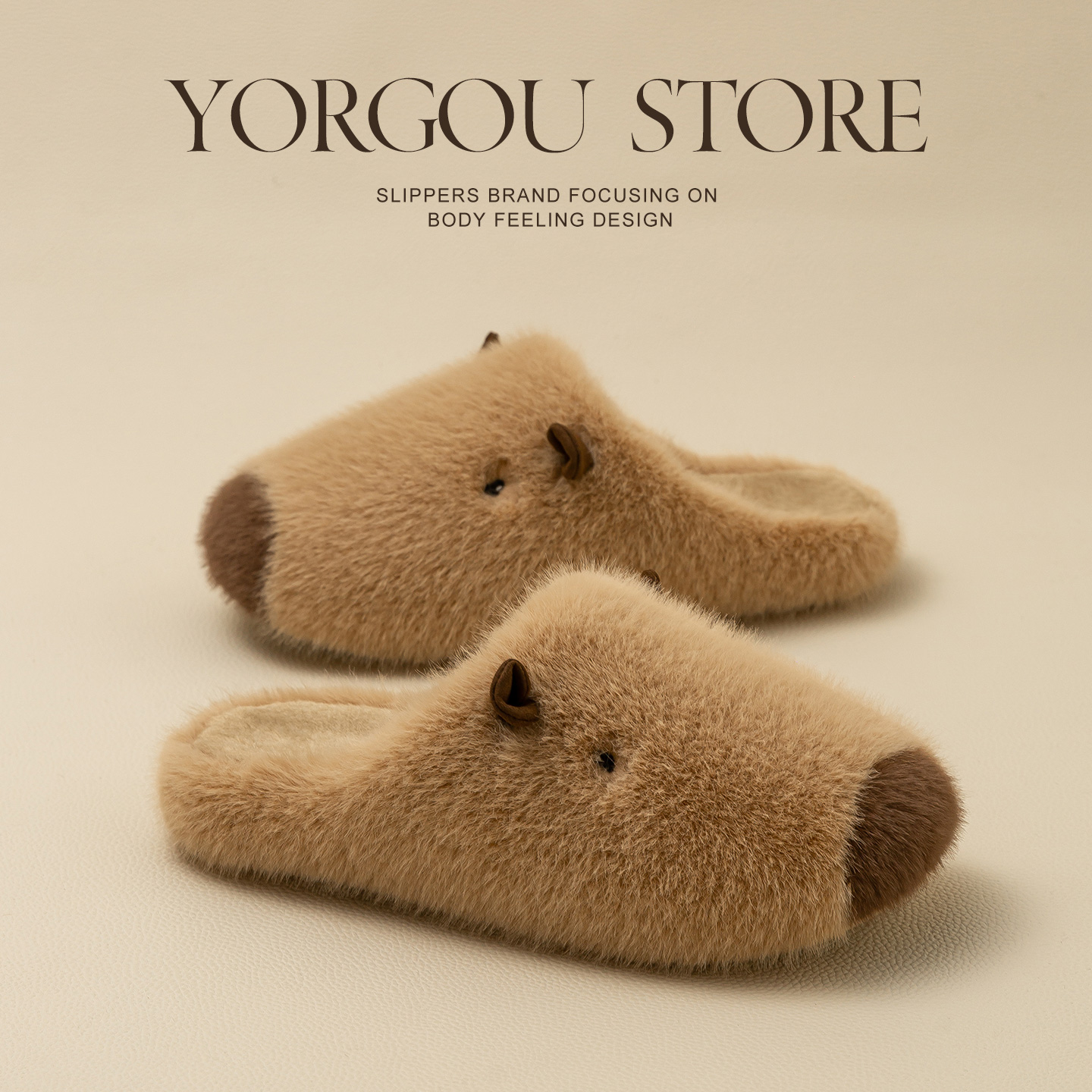 远港2025新款卡皮巴拉毛绒拖鞋女秋冬季室内保暖居家毛毛棉拖鞋男