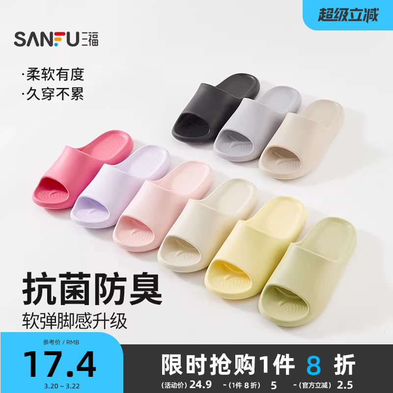 三福拖鞋女款情侣抗菌防滑防臭室内家居家用高级感凉拖男2026新款