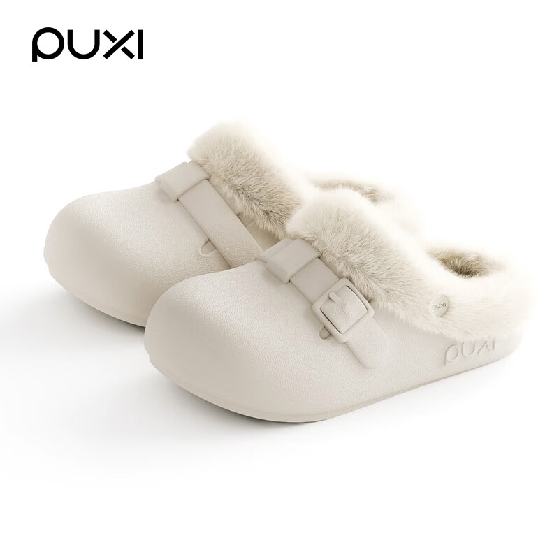 朴西女士冬季博肯可拆卸棉拖鞋复古轻盈软弹保暖外穿防滑百搭情侣棉拖 浅沙色 36-37