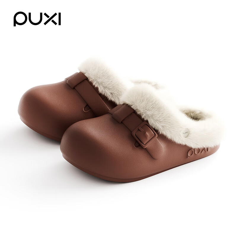 朴西女士冬季博肯可拆卸棉拖鞋复古轻盈软弹保暖外穿防滑百搭情侣棉拖 博肯棕 36-37