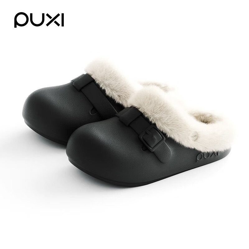 朴西女士冬季博肯可拆卸棉拖鞋复古轻盈软弹保暖外穿防滑百搭情侣棉拖 礁石黑 42-43
