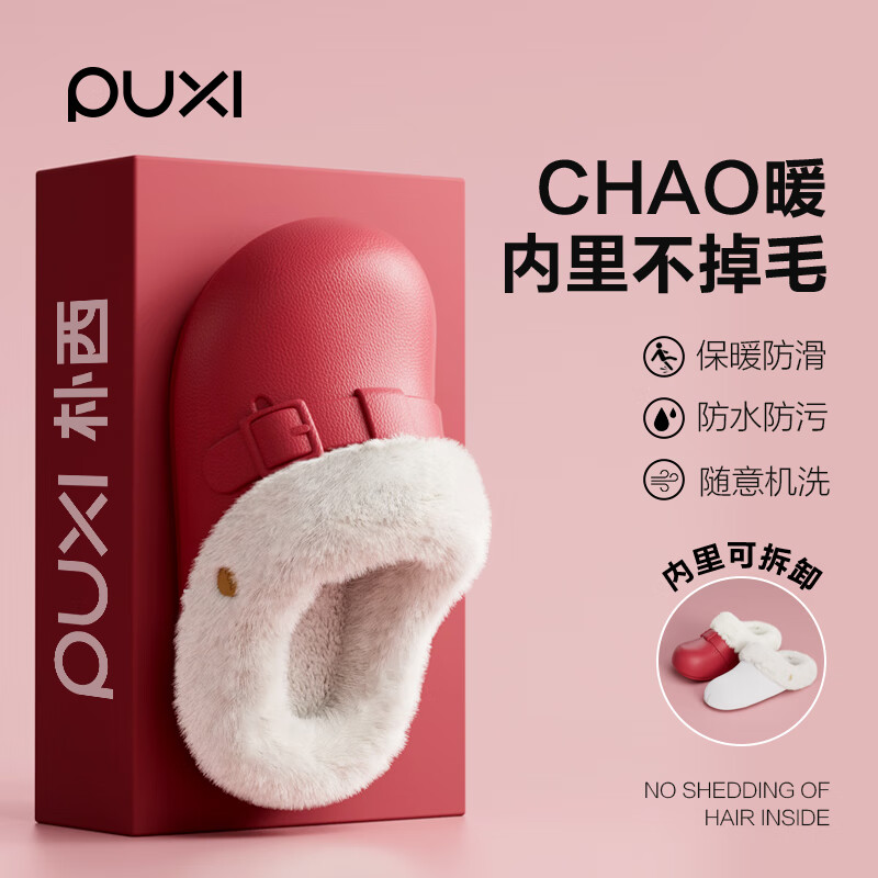 朴西加绒保暖可拆卸博肯棉拖鞋女冬室内居家防滑静音不掉毛情侣棉拖男 安哥拉红 【居家保暖】 38-39 适合(37-38)