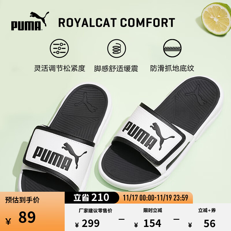 彪马(PUMA)黑白透气魔术贴拖鞋男女家居外穿休闲凉鞋ROYALCAT372280 白-黑色-02 35.5