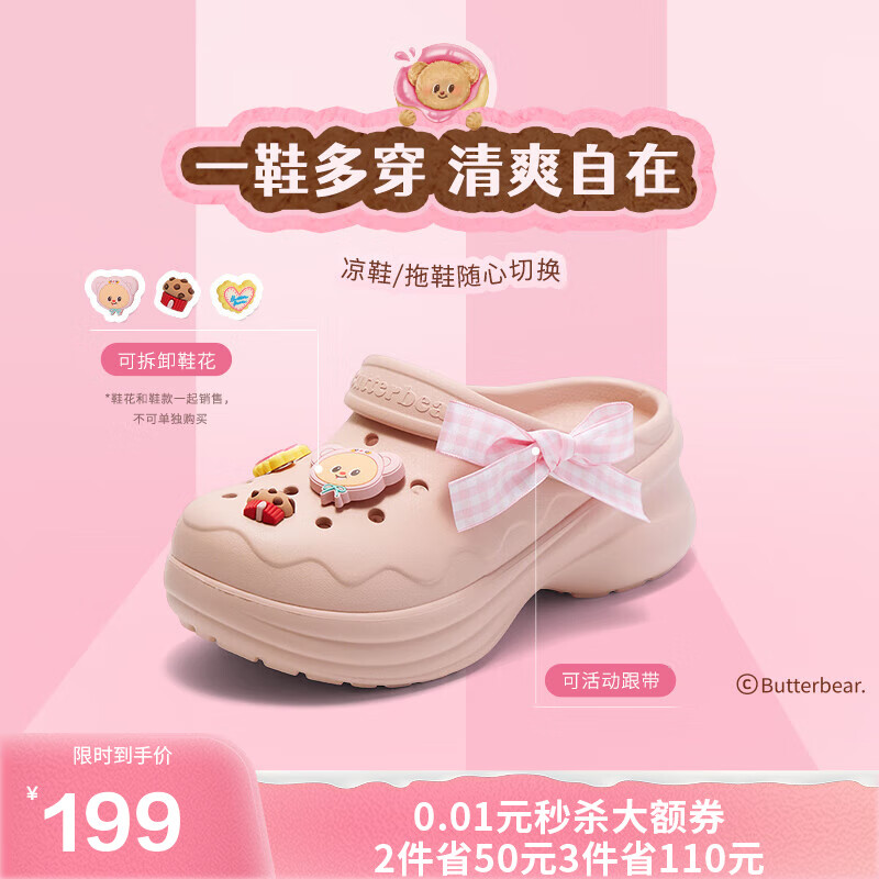 他她(TATA)黄油小熊联名洞洞鞋女秋季休闲鞋新款凉鞋拖鞋 粉露楚「朵拉熊」 35 (35/36可穿)