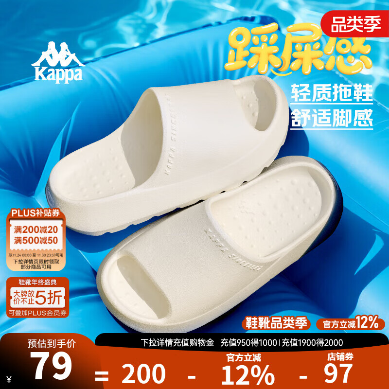 KAPPA卡帕拖鞋男2025秋冬新款运动拖鞋防滑沙滩鞋男款厚底时尚凉拖鞋子 冬日白 37-38