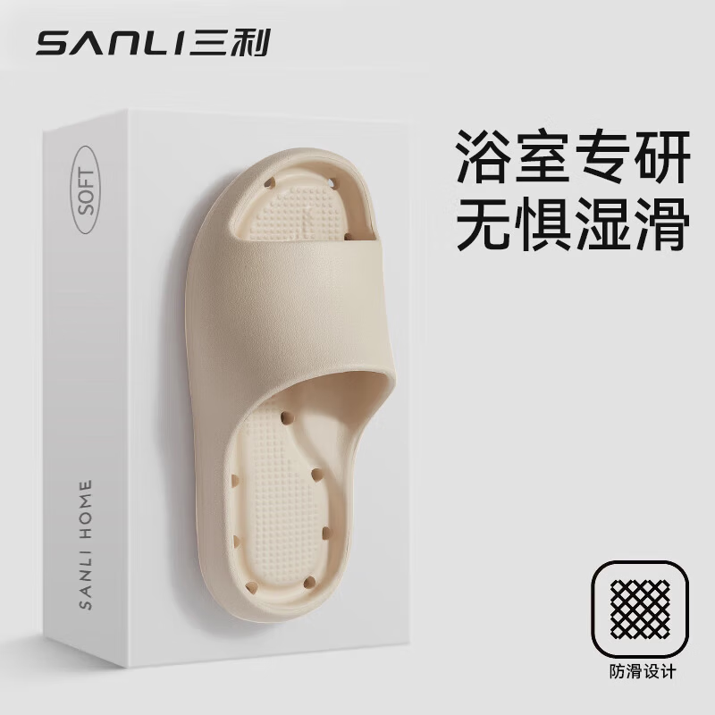 三利浴室拖鞋男士女洗澡卫生间防滑夏季室内凉拖 米色 40-41 【适合39-40】