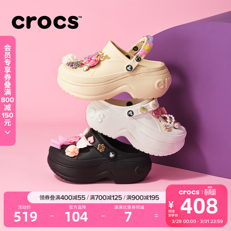 卡骆驰(CROCS)贝拉洞洞鞋沙滩鞋包头女鞋厚底拖鞋|210062 白色-100 35 (210mm)