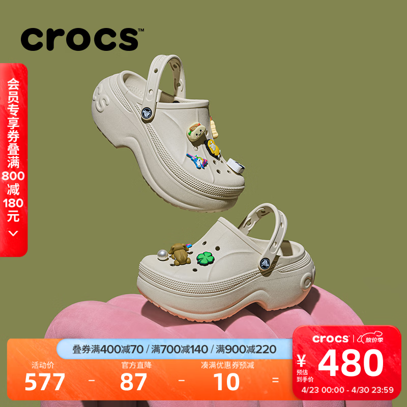 卡骆驰(CROCS)贝拉洞洞鞋沙滩鞋包头女鞋厚底拖鞋|210062 冬日白 -11S 37 (230mm) 38