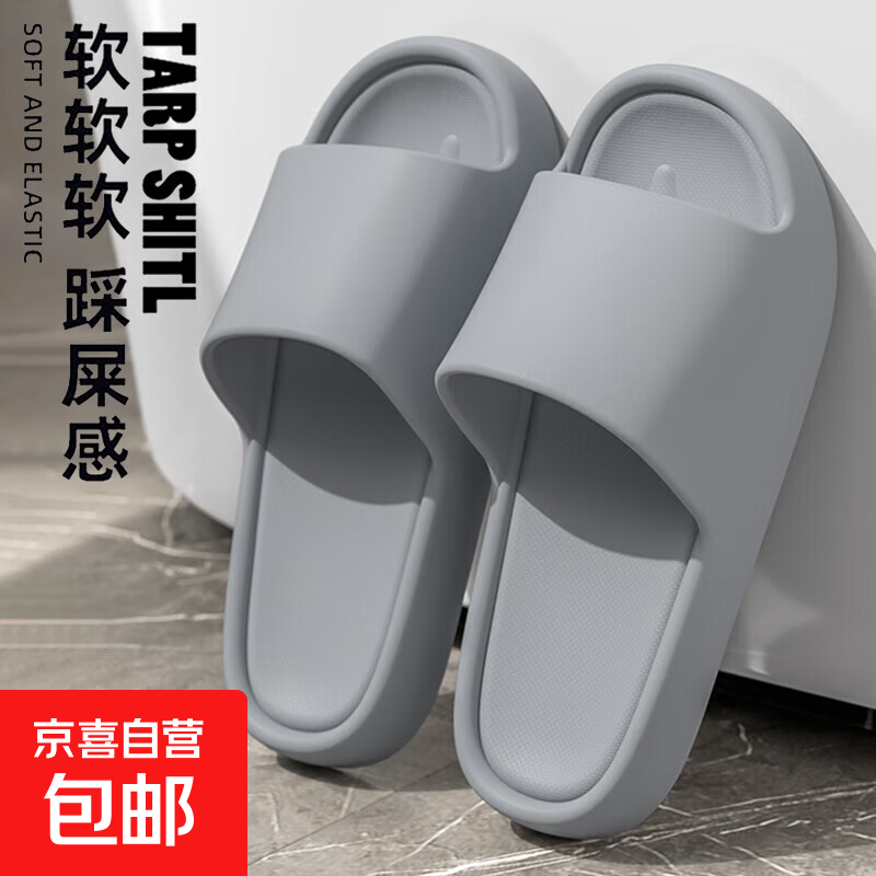 家用浴室拖鞋男夏厚底凉托鞋女踩屎感鞋软底速干轻便情侣室内外穿 灰色 44 -45【适合43-44码】