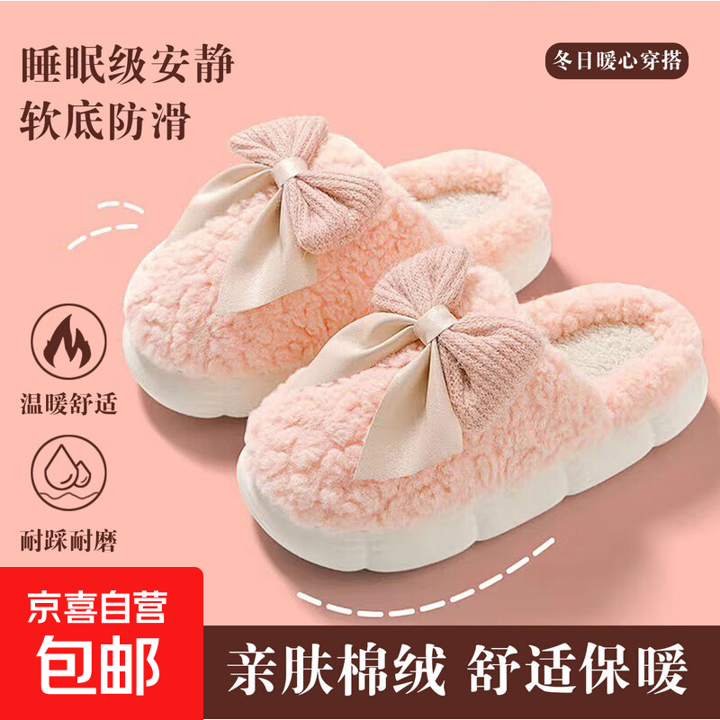 轻臣冬季室内居家棉拖鞋女款2024款秋冬家居防滑保暖毛绒毛毛拖鞋