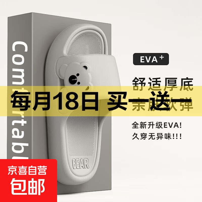 【山姆同款】3cm加厚防滑拖鞋eva情侣防臭浴室拖凉拖鞋男女柔软 灰色-居家拖鞋 44 【建议拍大1-2码】