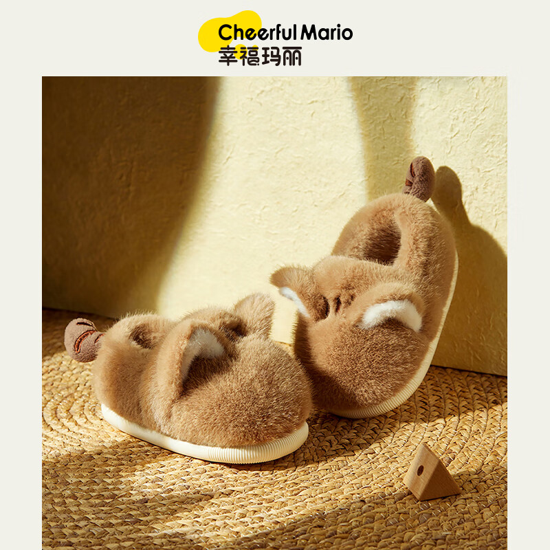 幸福玛丽猫咪儿童棉拖鞋女童冬季室内家居男童女孩秋冬毛拖鞋亲子宝宝棉鞋 卡其(棉鞋) 24 内长16cm (16)适合脚长15cm
