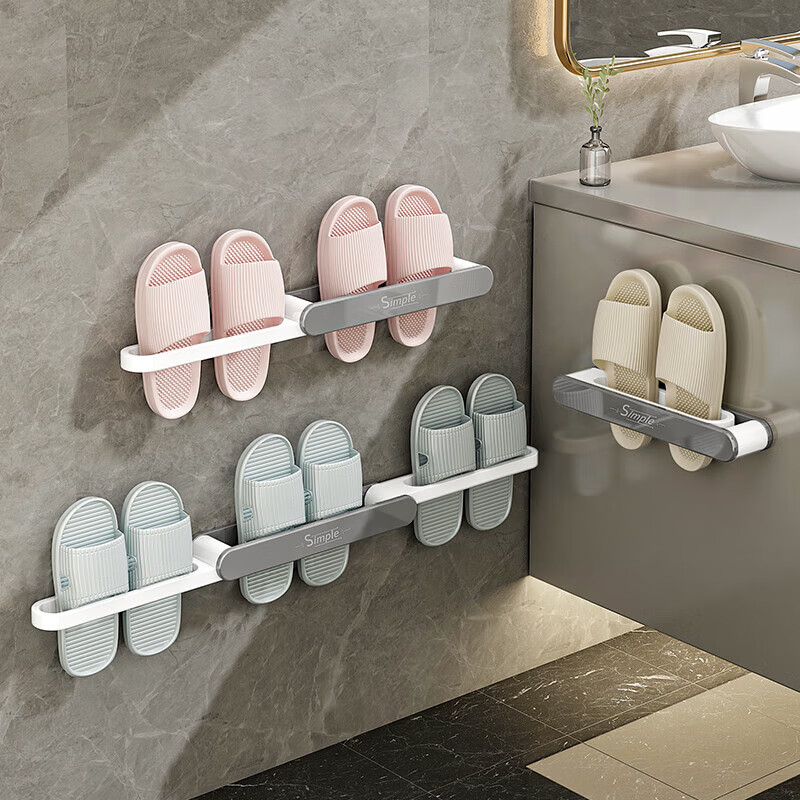 浴室拖鞋架免打孔卫生间置物架鞋子收纳壁挂门后厕所沥水挂架 【拖鞋架3层】一家三口