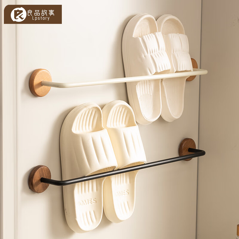 良品故事原木风浴室拖鞋架免打孔壁挂式卫生间厕所门后鞋子沥水收纳挂架 胡桃木拖鞋架【双位/50CM】 50cm