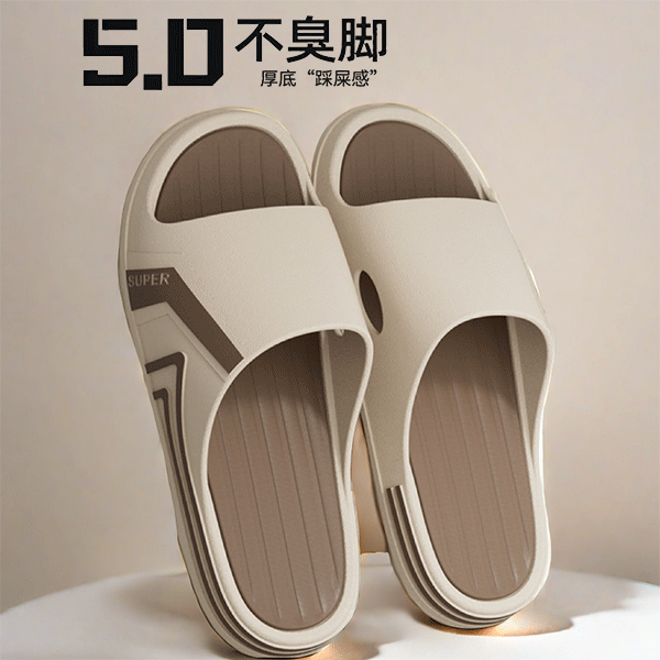 不臭防滑拖鞋男士家居防滑厚底夏季新款大码踩屎感凉拖外穿 卡其【加厚防滑舒适柔软】 44-45
