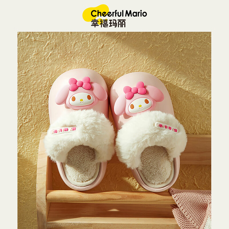 幸福玛丽卡通儿童拖鞋女孩2025新款冬季女童棉拖鞋室内家居毛毛可爱防水 美乐蒂-粉 27 内长18cm (18)适合脚长17cm