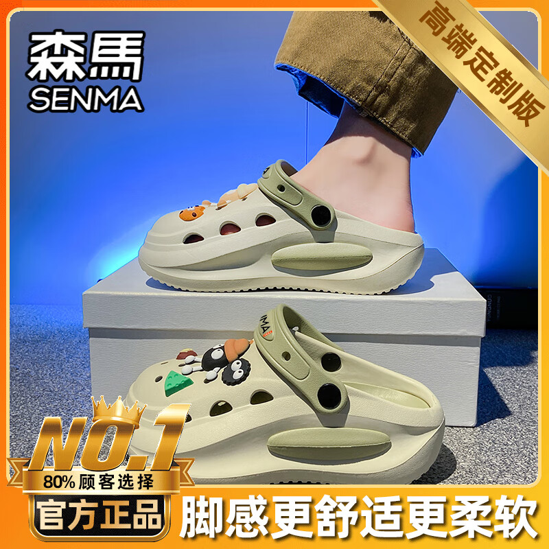 森馬包头拖鞋女夏季潮流外穿厚底踩屎感可爱洞洞鞋休闲二合一沙滩凉鞋 橄榄绿 (旗舰款) 36-37