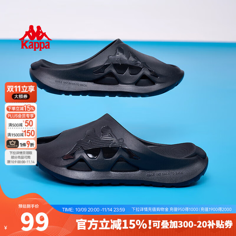KAPPA卡帕女鞋软底拖鞋子女2025秋季新款户外凉鞋女浴室百搭休闲沙滩鞋 黑色 42