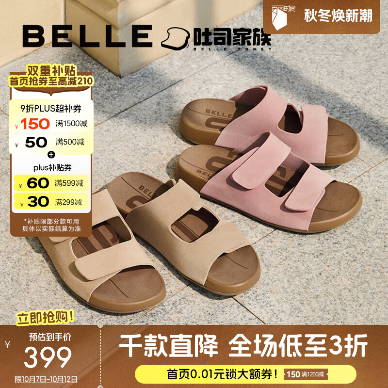 百丽(Belle)周雨彤杨迪同款吐司拖1代升级版女外穿勃肯鞋凉拖鞋A8R1DBT5 杏色-拖鞋(女款) 1代升级版 37 (235mm)