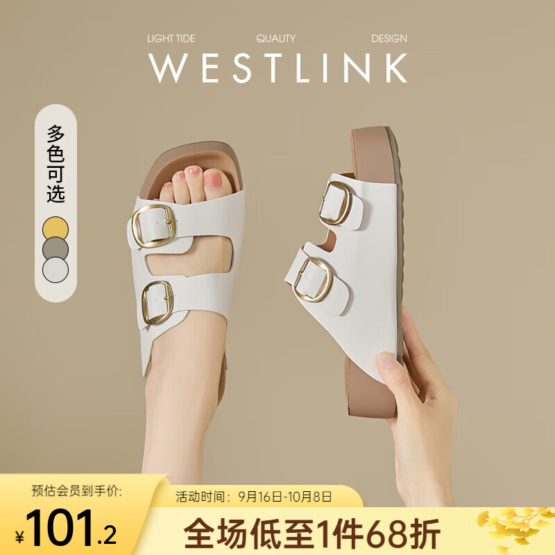 西遇厚底勃肯凉拖鞋女夏季外穿2025新款沙滩凉鞋软底增高一字拖鞋 白色 36 (230)