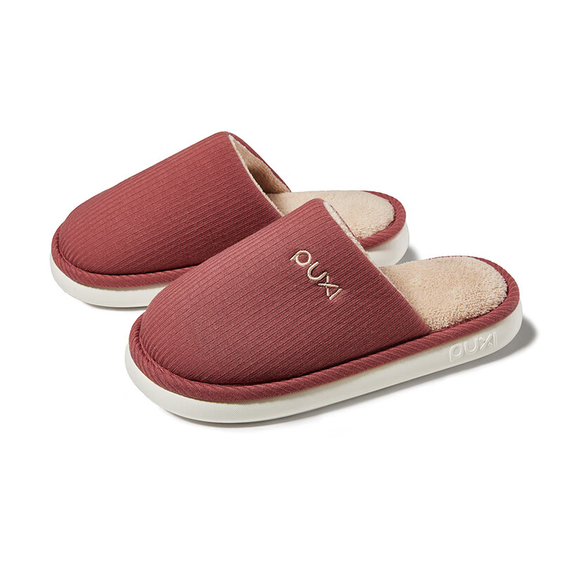 朴西防滑棉拖鞋女士2025秋冬新款家居室内保暖毛巾绒静音无声棉拖男 酒红色 37-38