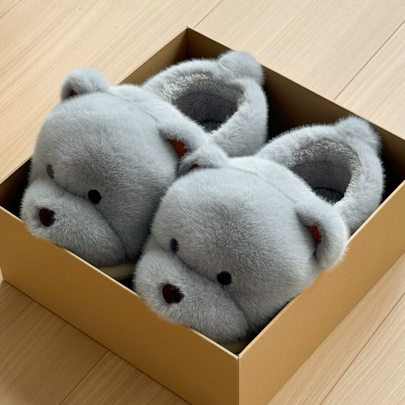 安尚芬棉拖鞋男冬季2025新款室内家居卡通毛毛绒保暖包跟情侣棉鞋女冬天 灰色 42-43 适合41-42(内长260mm)