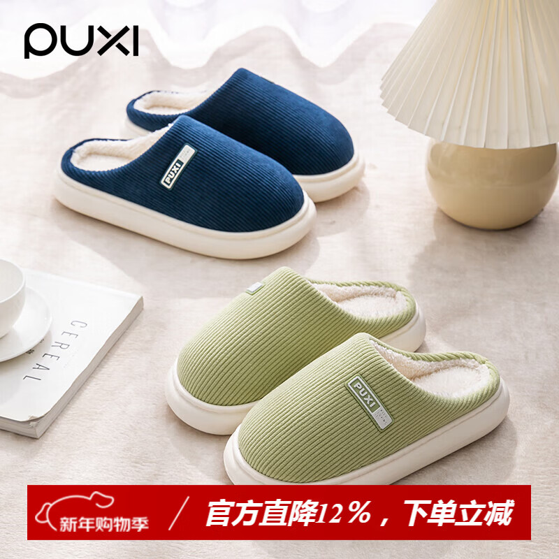 朴西踏云棉拖鞋男冬季百搭新款保暖家用棉拖加厚潮流毛绒防滑情侣棉鞋 藏青色 【温柔男友风】 42-43 【适合4142】