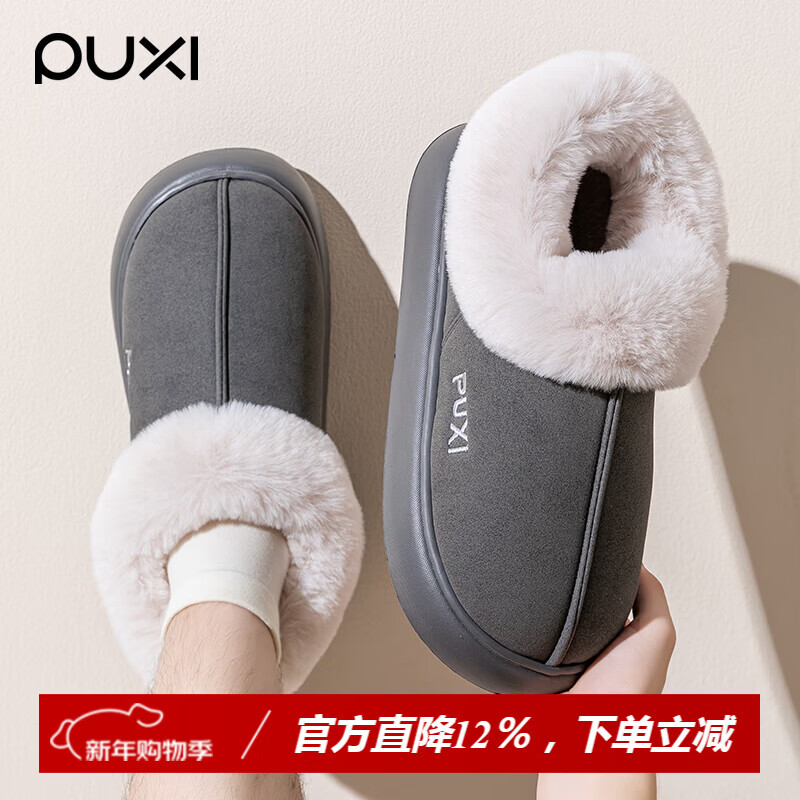 朴西踏云棉拖鞋男冬季百搭新款保暖家用棉拖加厚潮流毛绒防滑情侣棉鞋 深灰色 【耐脏实用】 40-41 【适合3940】