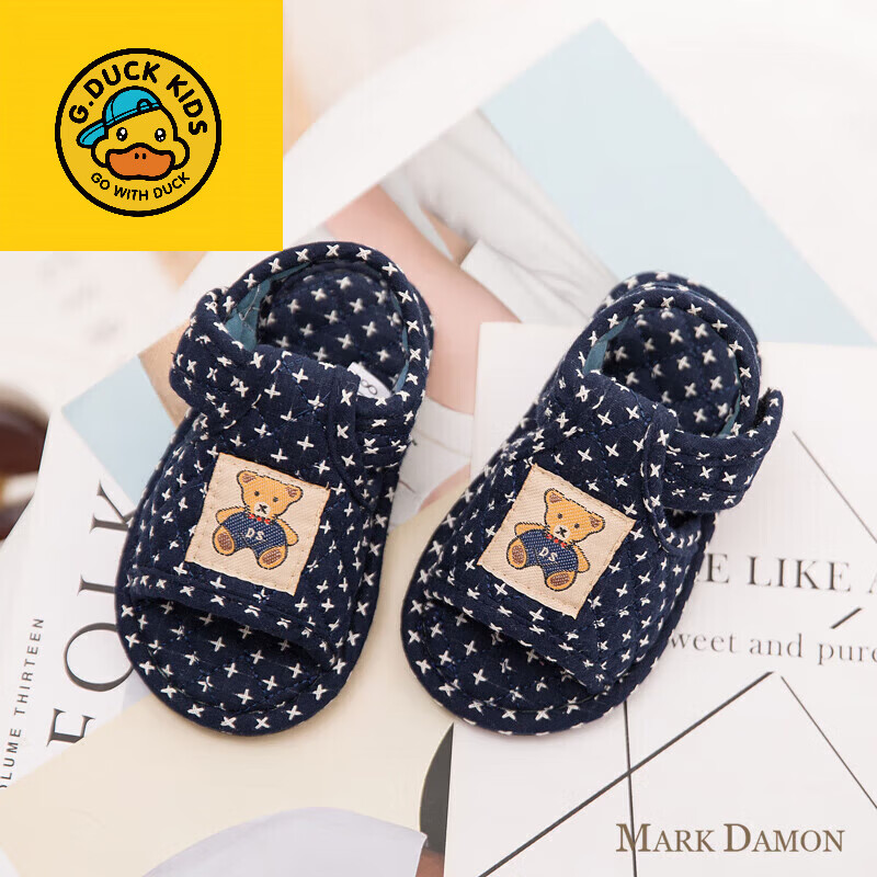 G.duck纯棉卡通熊儿童1-2-3岁宝宝学步布底防滑静音软底家居室内拖鞋冬 儿童蓝星 18 儿童(内长14厘米)