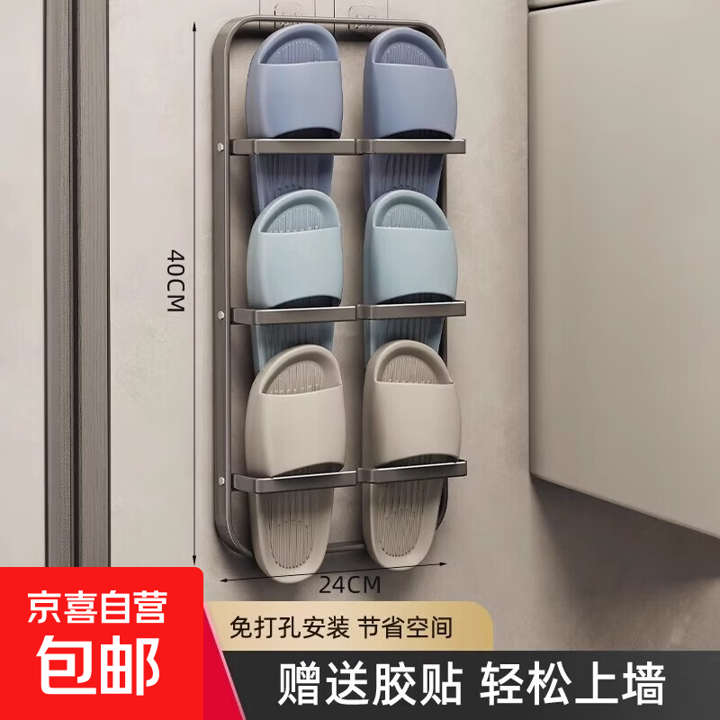 优勤(YOUQIN)浴室拖鞋架免打孔鞋子收纳卫生间置物架门后挂架壁挂沥水鞋架 枪灰-三合一可挂三双【单个装】