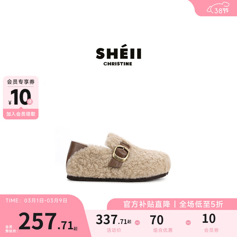 苏茵茵泰迪小面包可踩跟两穿内增高保暖毛毛拖鞋女单鞋冬季 奶茶色(原创专利设计月亮底+D家升级350G保暖绒 36