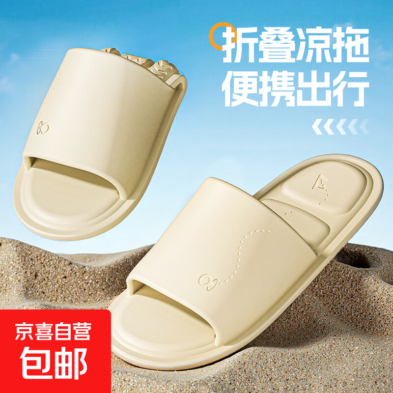 【万单爆款】拖鞋可折叠便携式旅游出差游泳酒店情侣防滑重复拖鞋 奶色 36-37