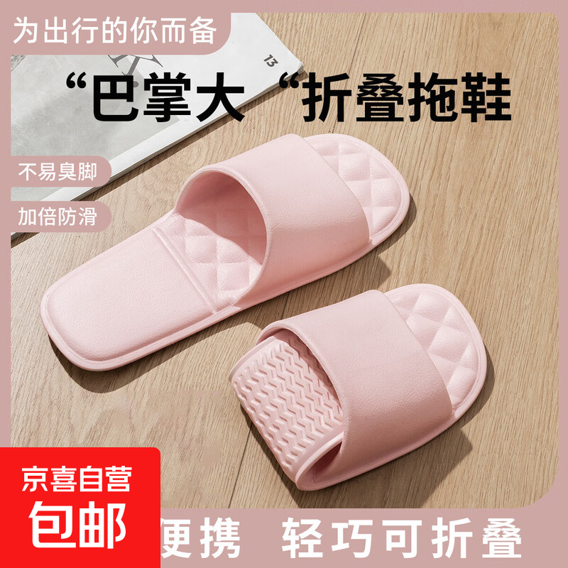 旅游折叠拖鞋便携式收纳携带居家凉拖鞋女款海边浴室防水速干鞋 粉色【可折叠】居家旅行必备 35 -38 S码