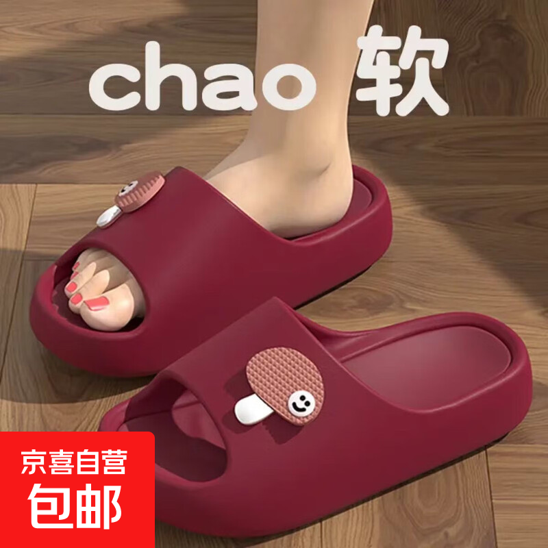 居家凉拖女小蘑菇凉拖鞋女家居拖鞋男居家鞋外穿一字拖沙滩鞋凉拖 红色 38-39