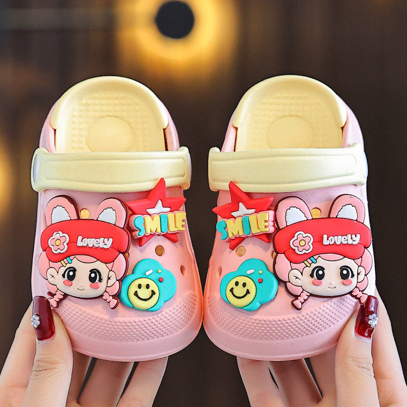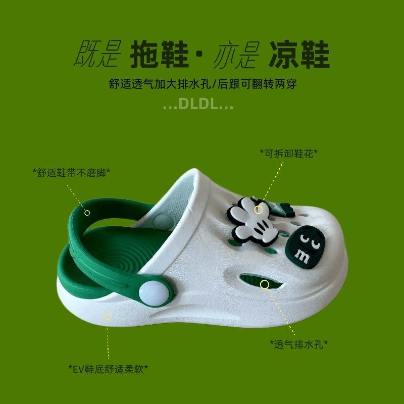 儿童可爱洞洞鞋h男女童户外两穿卡通撞色凉拖鞋软底防滑透气花园
