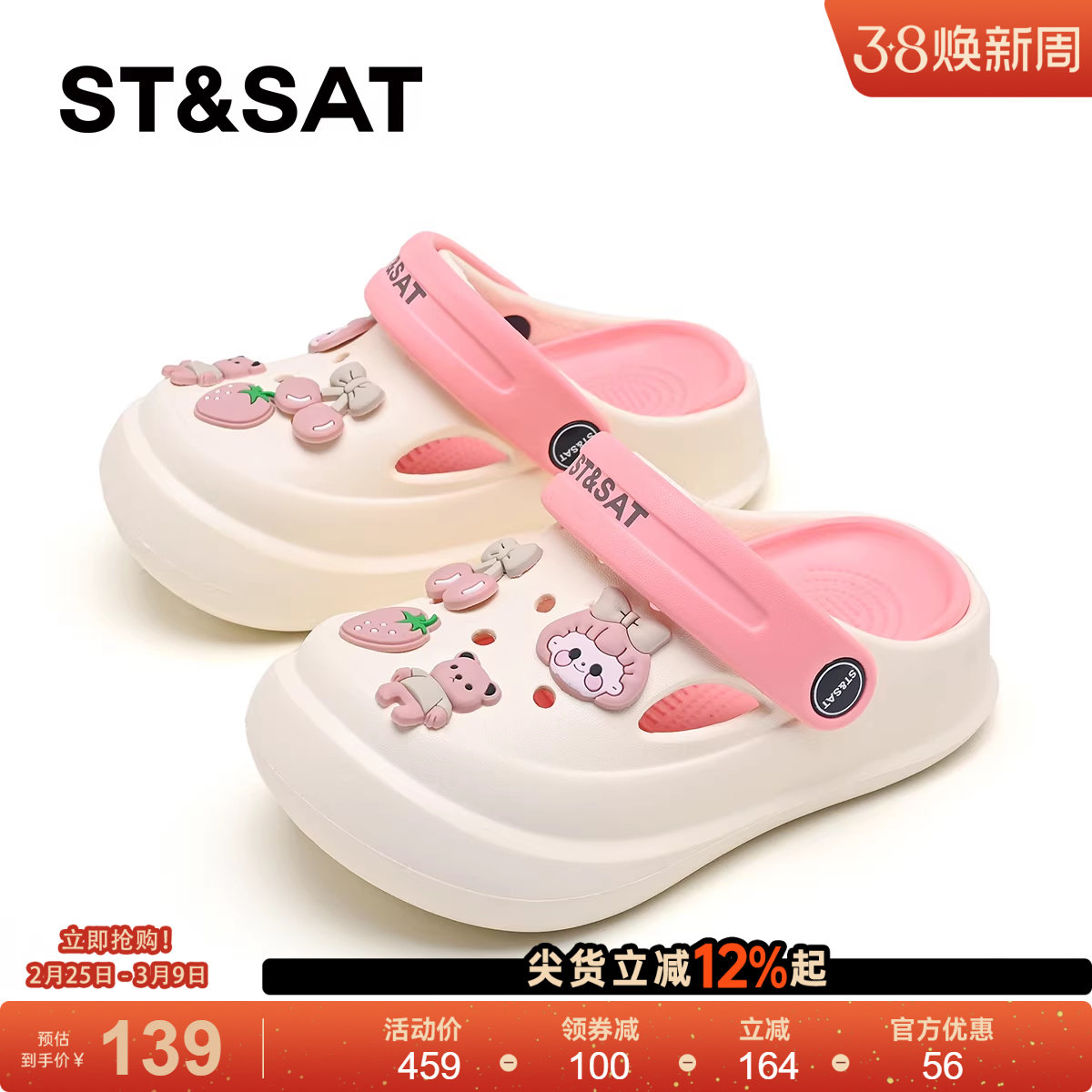 星期六童鞋外穿凉鞋2026夏季新款儿童洞洞鞋女童厚底轻便萌趣拖鞋