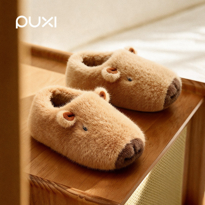 朴西亲子可爱卡皮巴拉包跟棉拖鞋冬季新款居家防滑外穿简约棉拖
