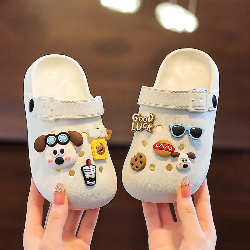 儿童洞洞鞋夏季卡通男女童家用室外穿包头防滑软底可爱宝宝凉拖鞋