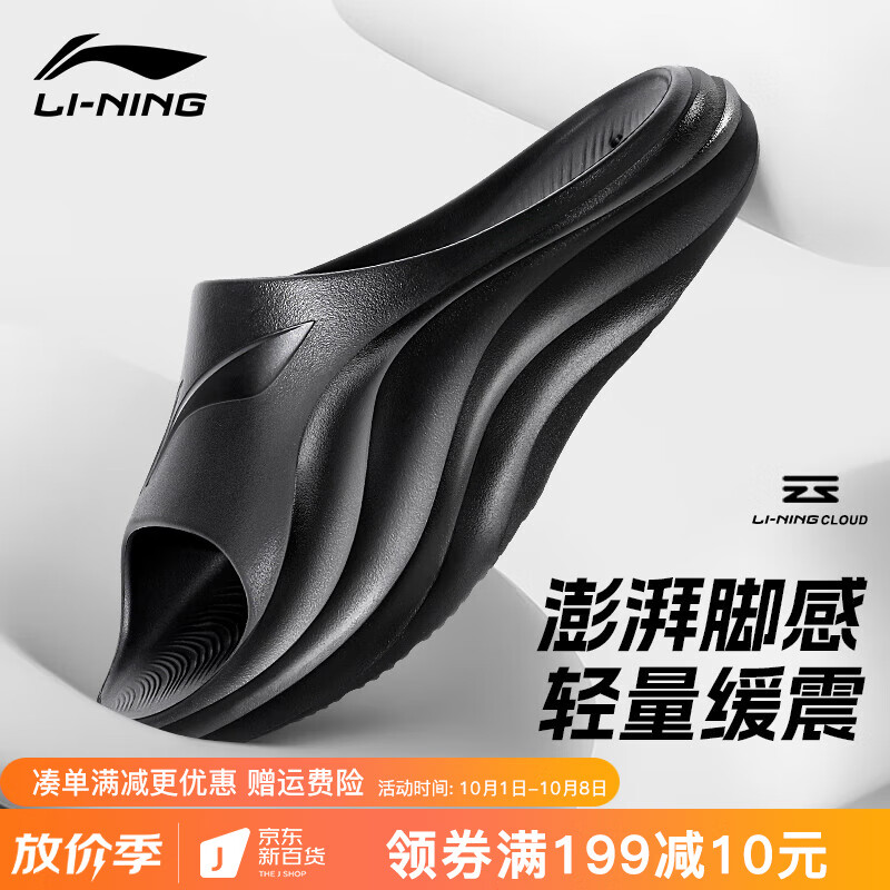 李宁(LI-NING)游泳拖鞋新款男女一字拖透气舒适凉拖游泳沙滩水上运动拖鞋 LNXU931-1黑色(偏大/选小一码) 41 255mm