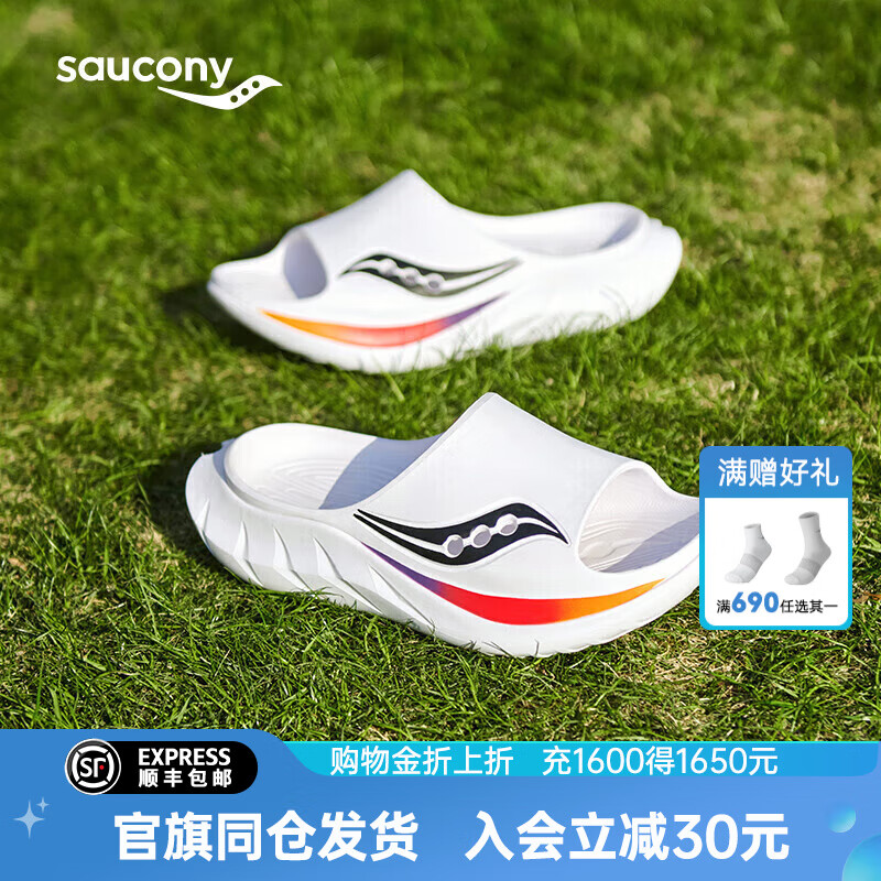 索康尼(SAUCONY)摇篮Cradle 2运动拖鞋男女同款夏季舒适沙滩鞋防滑耐磨外穿凉拖鞋 白黑2 【品牌专供色】 43 (275mm)