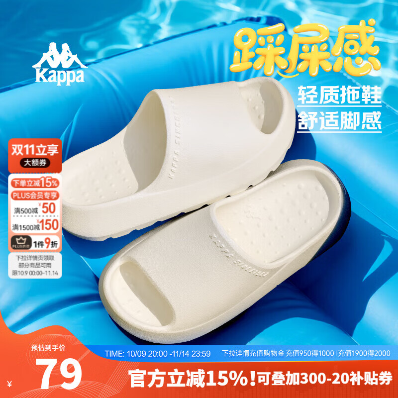KAPPA卡帕拖鞋男2025秋季新款运动拖鞋防滑沙滩鞋男款厚底时尚凉拖鞋子 冬日白 41-42