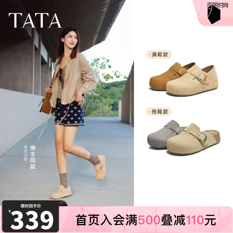 他她(TATA)女鞋2025秋款勃肯鞋外穿包头厚底单鞋休闲鞋拖鞋4UL01CH5 杏色 37