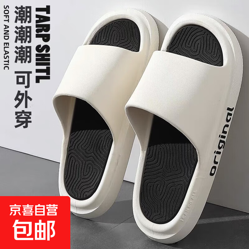 厚底拖鞋男款夏季外穿防滑耐磨静音踩屎感室内家居学生宿舍凉拖鞋 8812-白色【加厚防臭】 40 -41 【偏小一码】