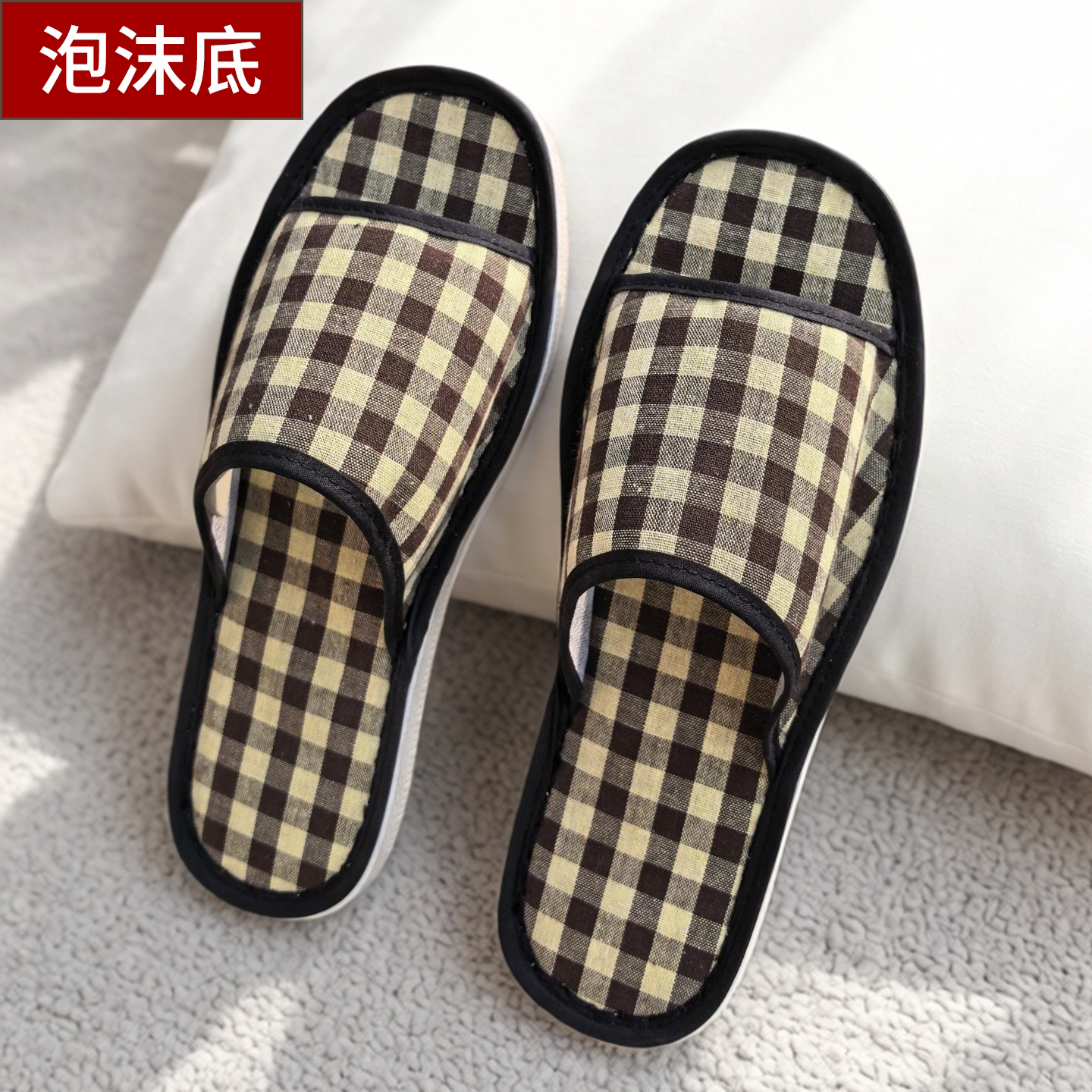 朴西2026新款方格亚麻拖鞋女四季透气防脚汗室内静音情侣亚麻拖男