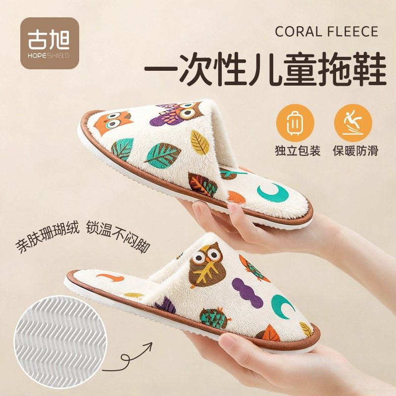 一次性棉拖鞋儿童招待客人家居旅行便携酒店专用冬季家用加厚防滑
