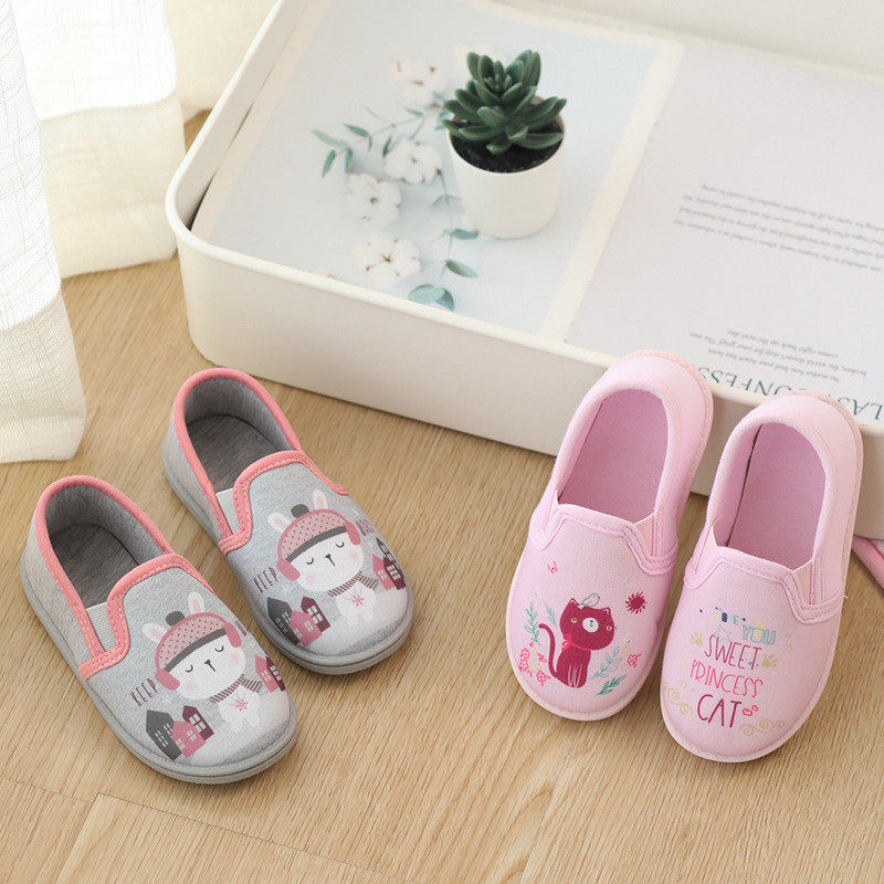 春秋女童棉布室内单鞋厚底包跟拖鞋可爱猫咪兔子幼儿园