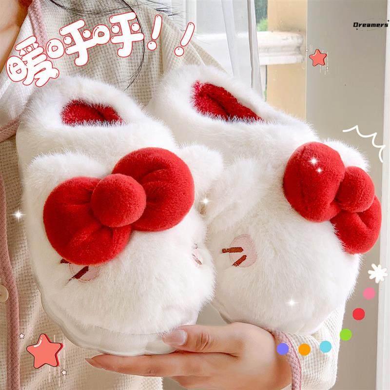棉拖鞋女冬季室内可爱蝴蝶结家居防滑情侣毛绒厚底保暖家用毛拖鞋